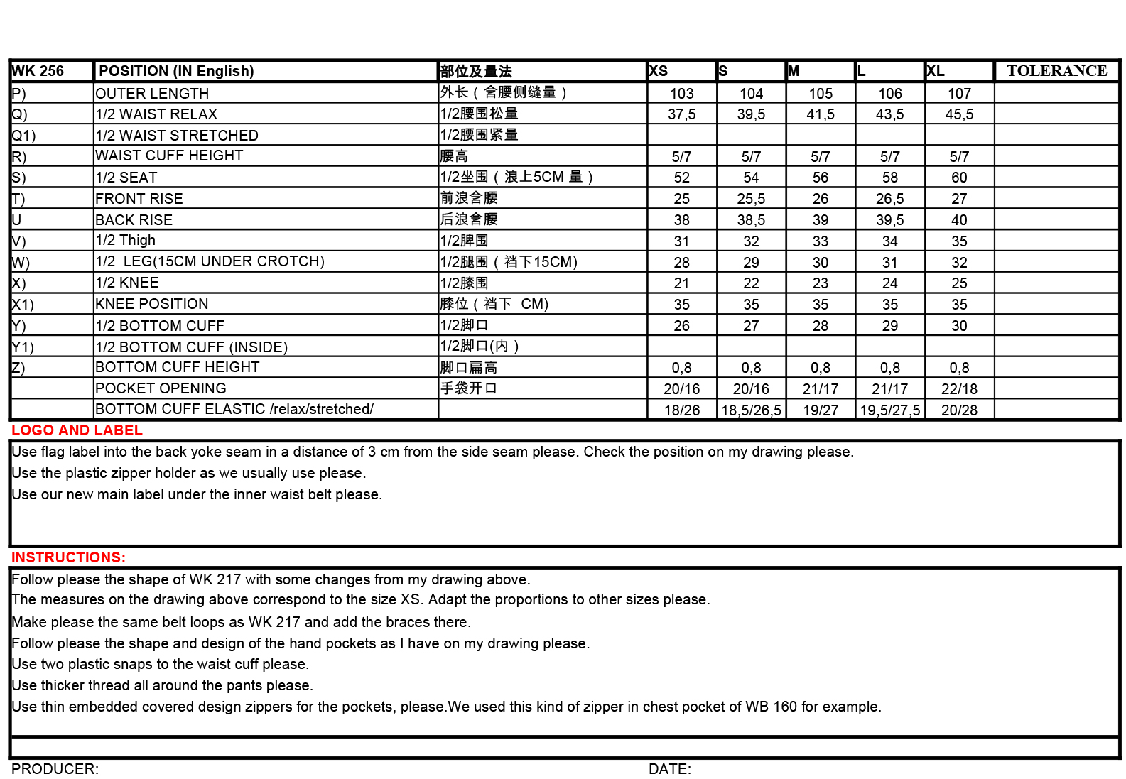 Cooperation with pattern room – plotting to patterns, clothing samples fitting comments.